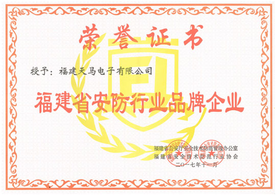 福建天馬電子有限公司在福建省安全技術(shù)防范行業(yè)協(xié)會(huì)理事會(huì)議暨評(píng)優(yōu)選先表彰大會(huì)中被評(píng)為“福建省安防行業(yè)品牌企業(yè)”。