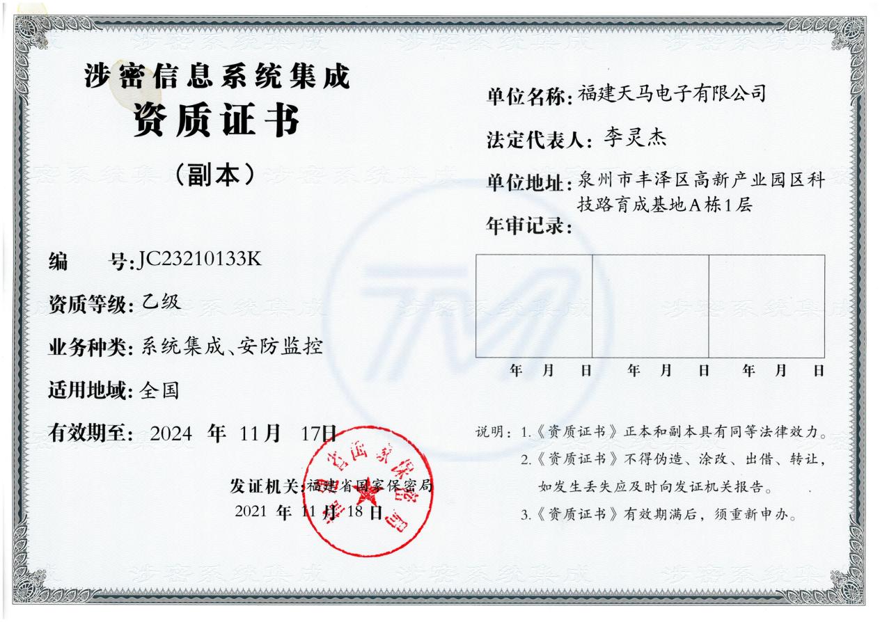 涉密信息系統(tǒng)集成乙級資質(zhì)(系統(tǒng)集...