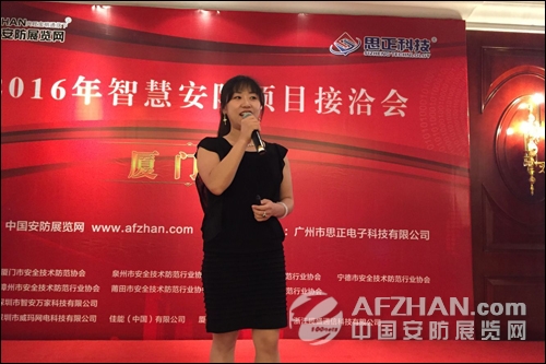 近年來,伴隨著國家智慧城市試點城市及規(guī)劃政策的陸續(xù)出臺,智慧城市項目建設(shè)快速推薦,相關(guān)產(chǎn)業(yè)創(chuàng)新技術(shù)與應(yīng)用也層出不窮,作為智慧城市建設(shè)的一部分,“安防”不可或缺。為促進(jìn)智慧安防在地方項目中更有效的落地實施,中國安防展覽網(wǎng)“2016智慧安防項目接洽會”走進(jìn)十城,搭建地區(qū)安防供應(yīng)商與采購商、工程商零距離交流對接橋梁。6月16日下午,伴隨著廈門地區(qū)智慧城市建設(shè)需求的增長,由中國安防展覽網(wǎng)主辦,廣州市思正電子科技有限公司獨家冠名,廈門市安全技術(shù)防范協(xié)會、泉州市安全技術(shù)防范行業(yè)協(xié)會、三明市安全技術(shù)防范行業(yè)協(xié)會、寧德市安全技術(shù)防范行業(yè)協(xié)會、漳州市安全技術(shù)防范行業(yè)協(xié)會、莆田市安全技術(shù)防范行業(yè)協(xié)會、南平市安全技術(shù)防范行業(yè)協(xié)會7地市安防協(xié)會聯(lián)合協(xié)辦,深圳市智安萬家科技有限公司禮品贊助的“2016智慧安防項目接洽會-廈門站”,在廈門市悅?cè)A酒店紫薇樓會議大廳成功召開!福建地區(qū)安防協(xié)會、物聯(lián)網(wǎng)協(xié)會領(lǐng)導(dǎo)、安防工程商、系統(tǒng)集成商、保安服務(wù)公司、名優(yōu)智慧安防企業(yè)等百余名嘉賓匯聚一堂,共享智慧安防新趨勢、新技術(shù)和新產(chǎn)品! [進(jìn)入2016智慧安防項目接洽會專題]